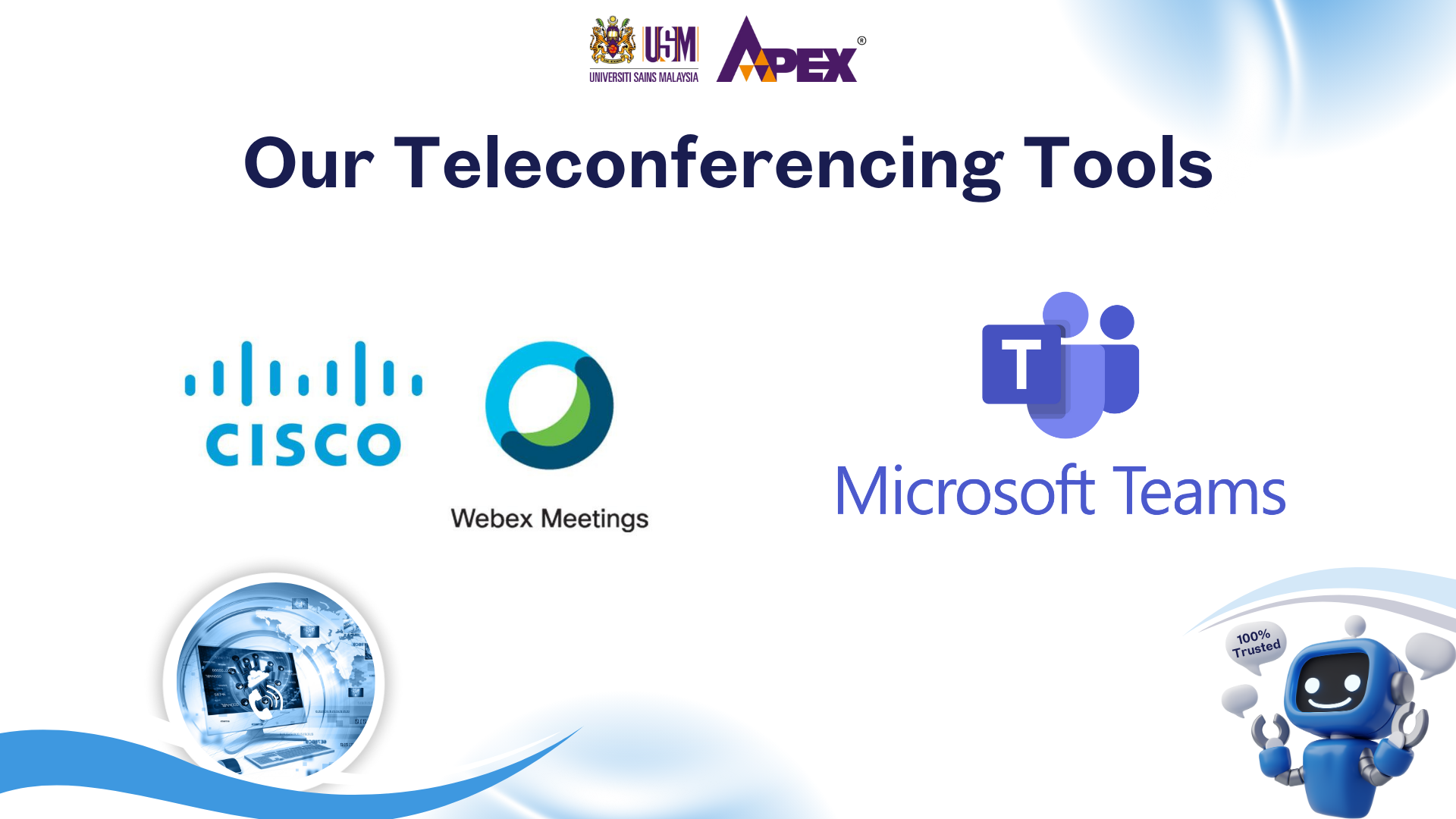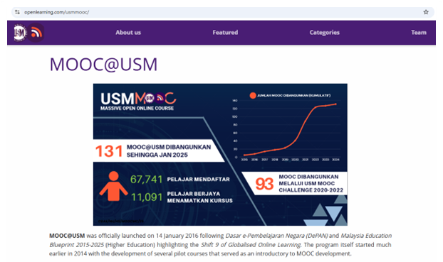Throughout 2024, USM strengthened its digital ecosystem to ensure uninterrupted work processes regardless of location. Staff receive official Microsoft Teams and Webex accounts for virtual meetings and cross-campus collaboration. Teaching and learning activities are supported through eLearn@USM and Panopto, enabling lecturers to conduct, record and manage courses remotely. Administrative operations such as leave applications and financial transactions are fully digital through E-Cuti and FIS@USM, allowing essential tasks to be completed securely from any location.